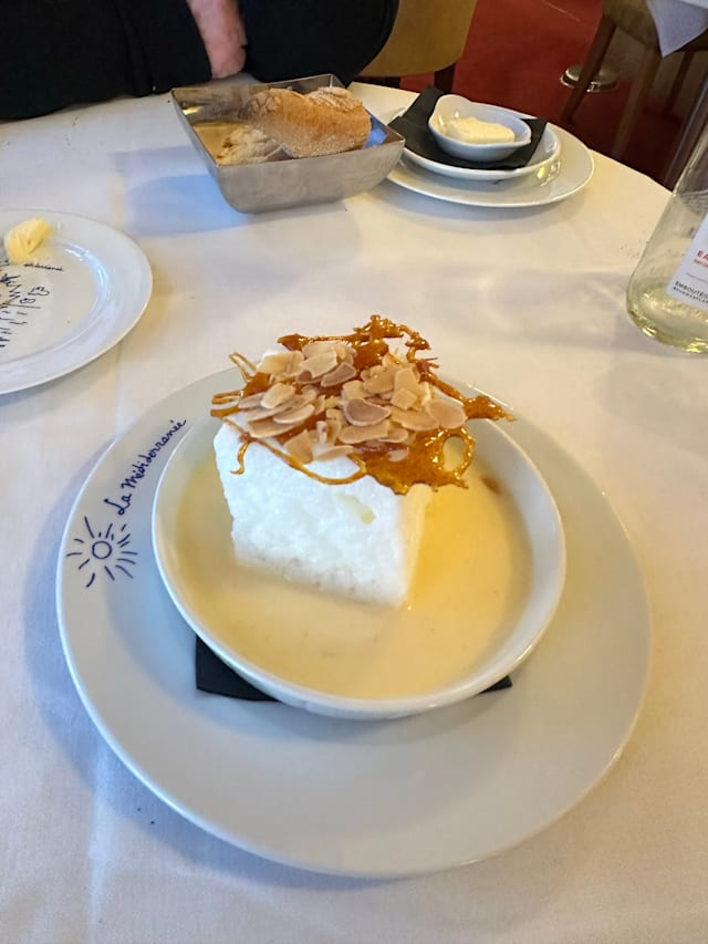 10/10My mother indulged my foodie side to attend this lovely lunch reservation. I did the fixed cost menu including a select starter, main and dessert. I chose the fish soup that was similar to a lobster bisque. The fish of the day was light and perfectly cooked as my main. I enjoyed the roast red and yellow peppers with a savory sauce. The star of the show was the floating dessert with a Carmel and almond topping with a light sauce. Delightful!