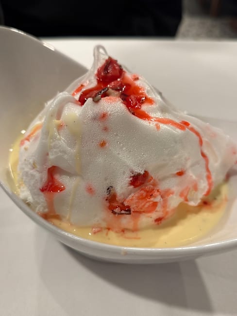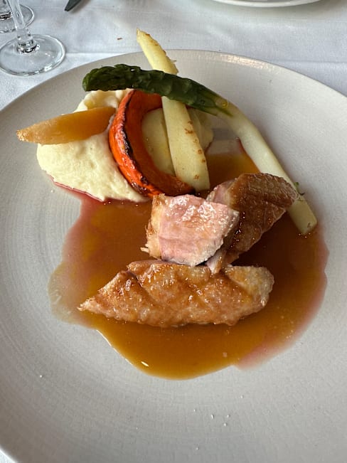 9/10Excellent service - friendly and accommodating. Scallops and quenelle were outstanding, while the duck was good (a little tough). The Pavlova dessert was really good as well