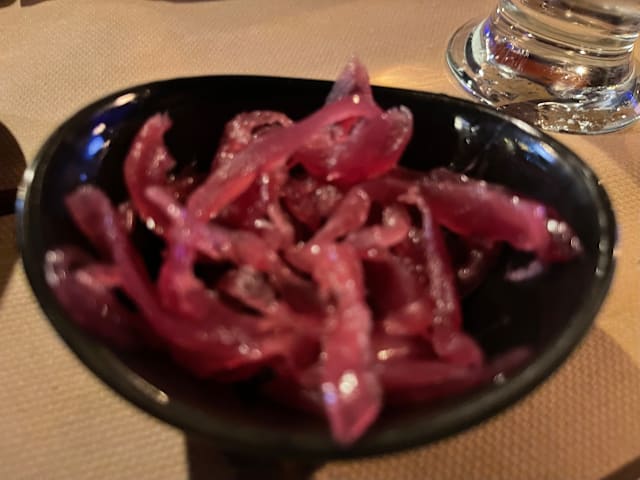 10/10Tonight my darling wife and I went out for a bit of a date night. We went to one of the spots that’s become a favorite — a spot that makes no big pretenses, you can just sit down, relax and feel laid back. It’s called 𝐋𝐀 𝐌𝐎𝐋𝐄 𝐏𝐔𝐁 even though it’s not particularly close to La Mole. They make their Negronis with Vermouth Del Professore which is a nice step up from a standard vermouth, and we each enjoyed one. The last time we were here, my wife had gotten the ribs and when I tasted one I thought they were superb. So I knew in advance that would be my choice tonight. She opted for the Angus arrosticini (served on skewers). We thought both of them were delish! We even snuck in a dessert to share: a Bavarese that came with a choice of toppings. My wife was intrigued by the caramello di birra (a beer caramel) — it definitely was opulent in its gooeyness, though the beer impact didn’t jump out at us. A really nice, relaxed and deliciously fun time with my bride. If you want a chill kind of spot, this is worth it.