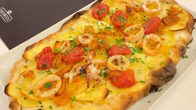 - Mezzo pacchero vongole veraci, tartufo fresco e pistacchio