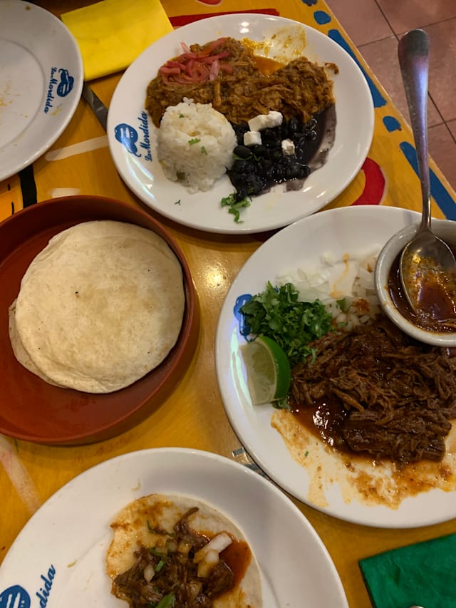 6/10We could see the person in the kitchen warming up food in the microwave. One of our meals was cold (rice, beans, and meat)... I guess they forgot to put that plate in the microwave. Jarritos were almost €4 each. Only 1 out of our 4 meals came with rice and beans. Good service, but we were very disappointed with the food.