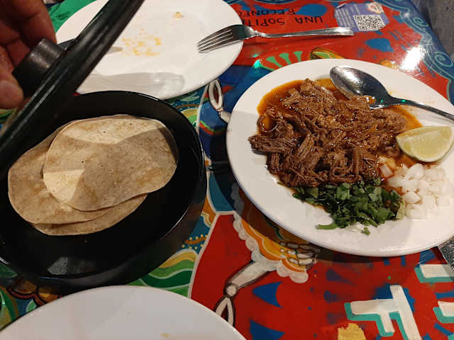 - Tortilla gigante rellena de birria de res jugosa y queso fundido, dorada al punto