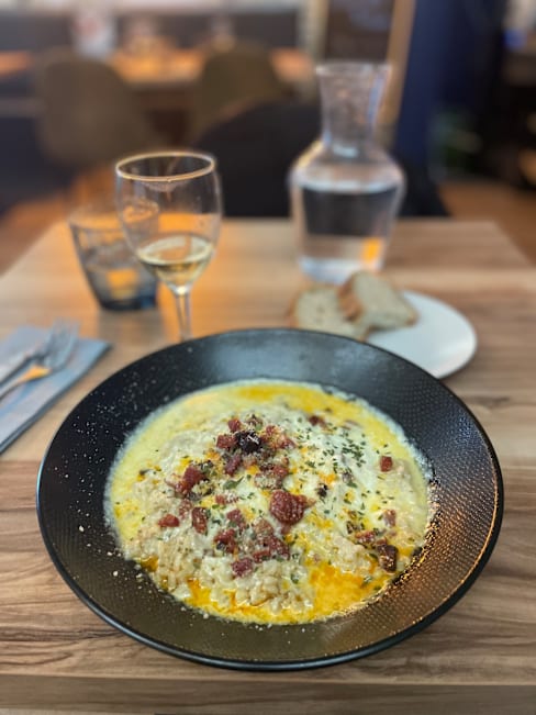 10/10I had the set menu of the truffle burrata and risotto au chorizo et burrata with the panna cotta dessert— they were all REALLY GOOD. My favourite was the risotto! Thé service was superb as well. I’d definitely recommend this place.