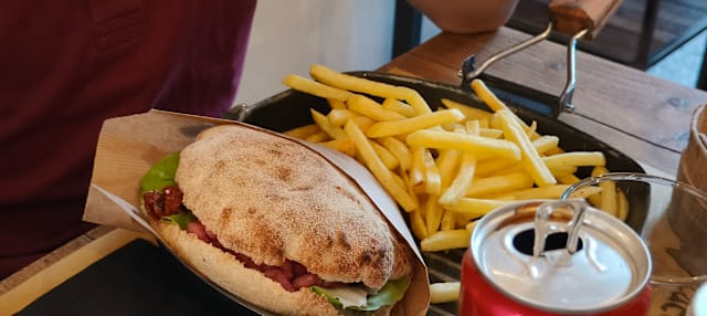 9.5/10Perfect Meat and and friendly location. Together with friends a very nice place to sit , eat and drink . Have fun !