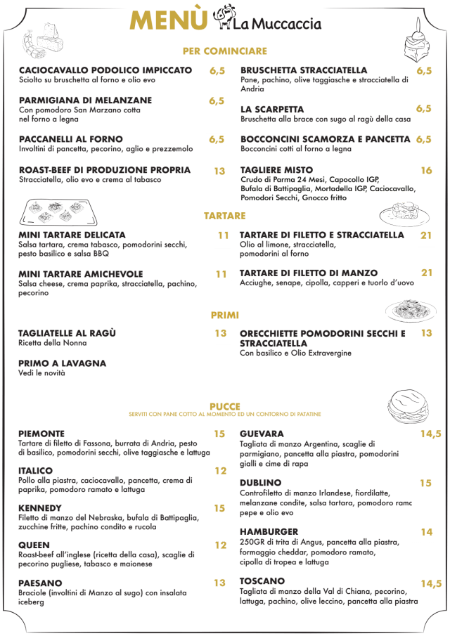 8.5/10The whole staff were super friendly and welcoming, and the food was very tasty!! We were a group of 9 people and the service was fast and organised. We loved to have dinner in La Muccaccia close to the canal, 100% recommended!