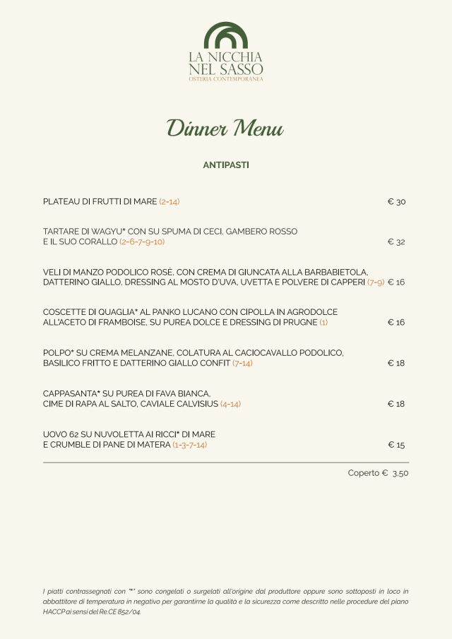 Il ristorante é situato nel cuore del sasso barisano, zona traffico limitato, si consiglia di parcheggiare al di fuori della ZTL presso parcheggi liberi e/o a pagamento
