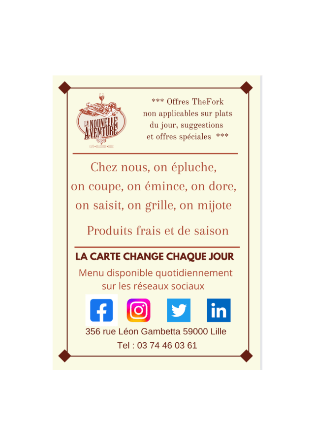 10/10Great location, near Wazemmes market. Food was delicious, great value for money. Good service, I highly recommend.