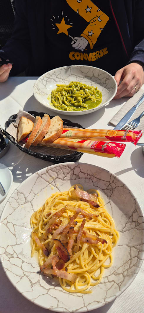 6/10We were seated right away. The waiter came to take our order before we had a chance to look at the menu. After we placed our order the food was delivered promptly. It was very ordinary if not bland. It lacked flavor. The carbonara had chunks of fat that could not be called anything else. It was not even chewable. The spaghetti my partner ordered tasted like it came from jar. We will not be returning.