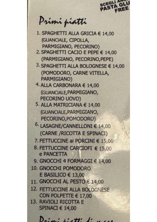 8/10Close the the Colosseum, reasonably priced, food was good. We ordered gluten free pizza, it was very nice. We sat outside and service was quick. Would recommend