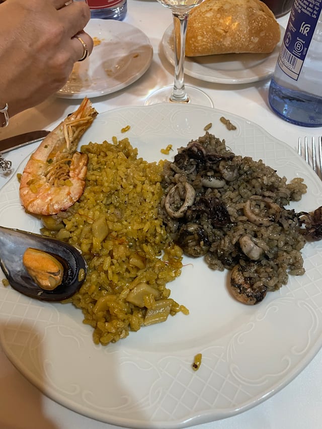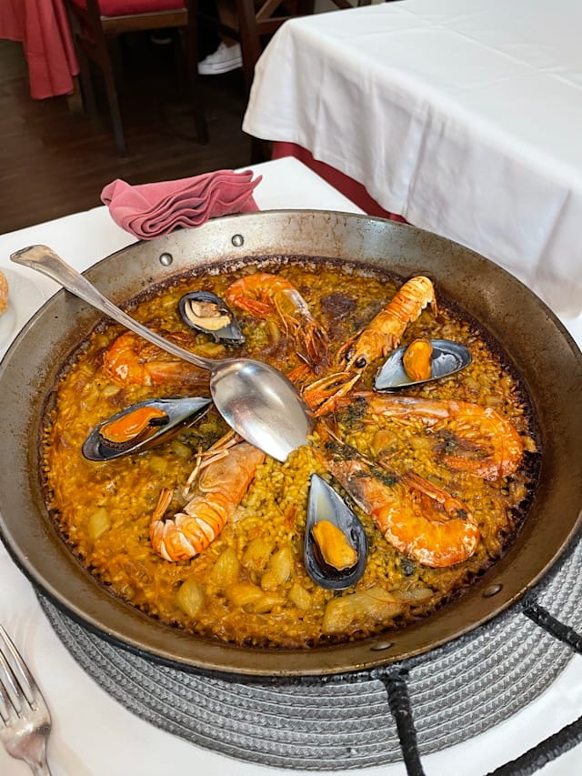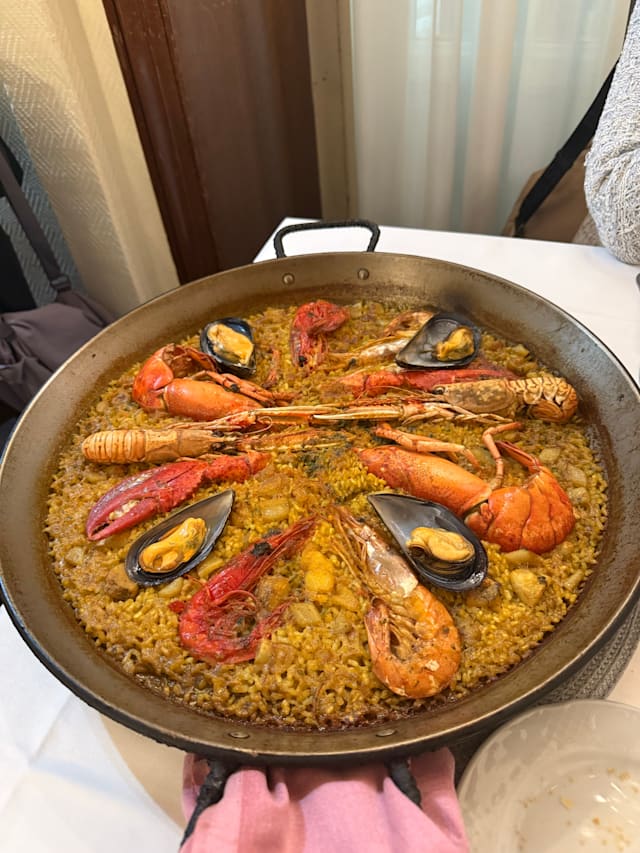 9/10We had the lobster paella and the black rice with prawns paella. Both were EXCELLENT. We loved the location (2 minutes from where were staying near the Opera metro) and the restaurant appearance. Our waiter didn't particularly appreciate when we asked what the Valenciana salad consisted of; his answer was obviously 'how do you idiots not know that'. And he didn't pour our wine but did for the neighboring table, a slight my daughter noticed. He did seem to warm up a bit by the end of the meal and we didn't let his gruffness ruin our enjoyment of the excellent food. We had made a last minute reservation and arrived a few minutes before our time and they were accommodating so I will not remove a star for a couple minor issues. If you want great, fresh paella, check this place out!