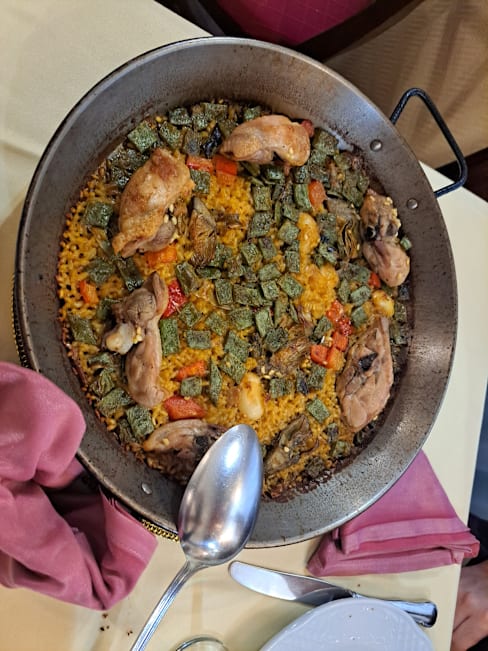 9/10We had the lobster paella and the black rice with prawns paella. Both were EXCELLENT. We loved the location (2 minutes from where were staying near the Opera metro) and the restaurant appearance. Our waiter didn't particularly appreciate when we asked what the Valenciana salad consisted of; his answer was obviously 'how do you idiots not know that'. And he didn't pour our wine but did for the neighboring table, a slight my daughter noticed. He did seem to warm up a bit by the end of the meal and we didn't let his gruffness ruin our enjoyment of the excellent food. We had made a last minute reservation and arrived a few minutes before our time and they were accommodating so I will not remove a star for a couple minor issues. If you want great, fresh paella, check this place out!