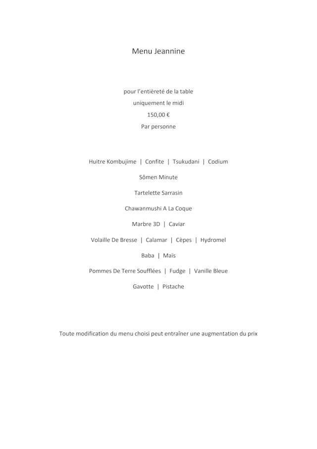 10/10Great culinary experience! Well balanced Japanese vibes! Good selection of wines by the glass! Very interesting to learn about the place, its history and Nathalie's family original restaurant that her husband gradually brought to a 2 Star Michelin!