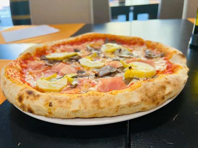 - Pomodoro, mozzarella mix di latte vaccino e bufala, salsiccia, funghi, prosciutto cotto, carciofi, olive nere