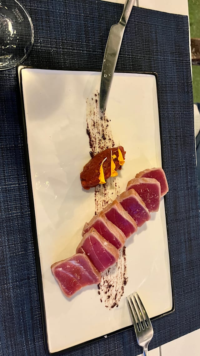 10/10An absolute gem of a restaurant tucked away in a quiet residential place but worth every step to get there. We were totally smitten with the ambiance of this restaurant. Well spaced generous sized tables in a quiet buzz of soft background music and the hum of nearby conversations. The sharing menu for two was a delight. Each offering was a treat. The excellent presentation was matched in flavour. The champagne sorbet we chose was the perfect finale to this perfect gastronomic experience. And to add to this marvellous evening was unbelievable value for money Will certainly return when we visit Cambrils again.