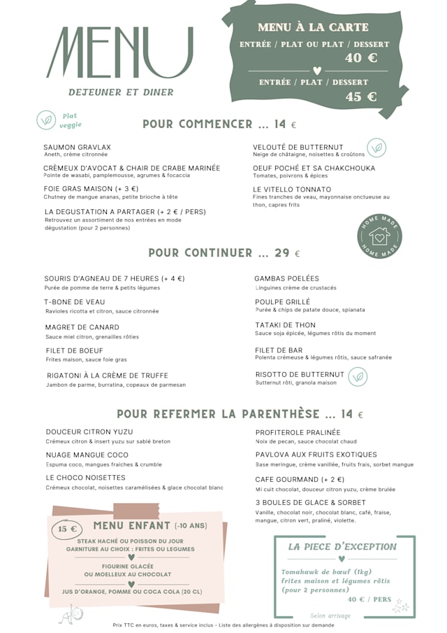 INSIDERFrenchEuropeanSaladTruffleBirthdayBrunchCommunionGardenGood for a business lunchGood for groupsOutdoor diningRomanticSeminarWith friendsChristmasChristmas and New YearNew year's eveValentine's DayVegetarian dishes