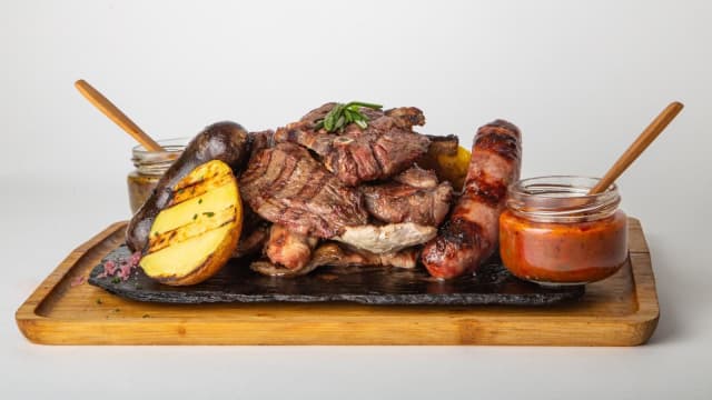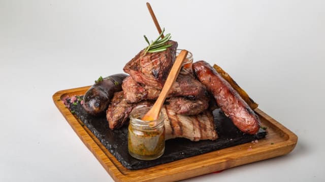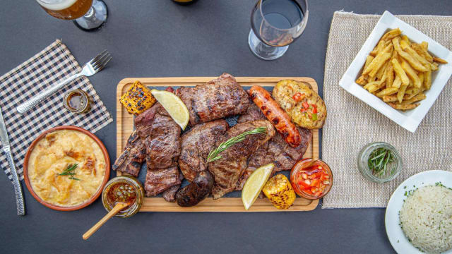 Incluye: solomillo, ojo de bife, entraña, tira de asado, vacío, secreto de cerdo, chorizo y morcilla criolla