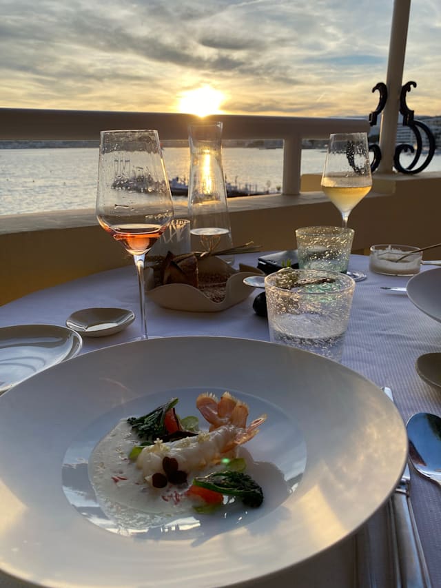 9/10At first the service was really slow so we were concerned, but once we got started it was great. The dishes were beautifully presented and delicious. The framboise dessert was one of the most beautiful I have ever seen. Beautiful location and atmosphere. The wine list is pricey and very few selections by the glass. Overall a great choice.