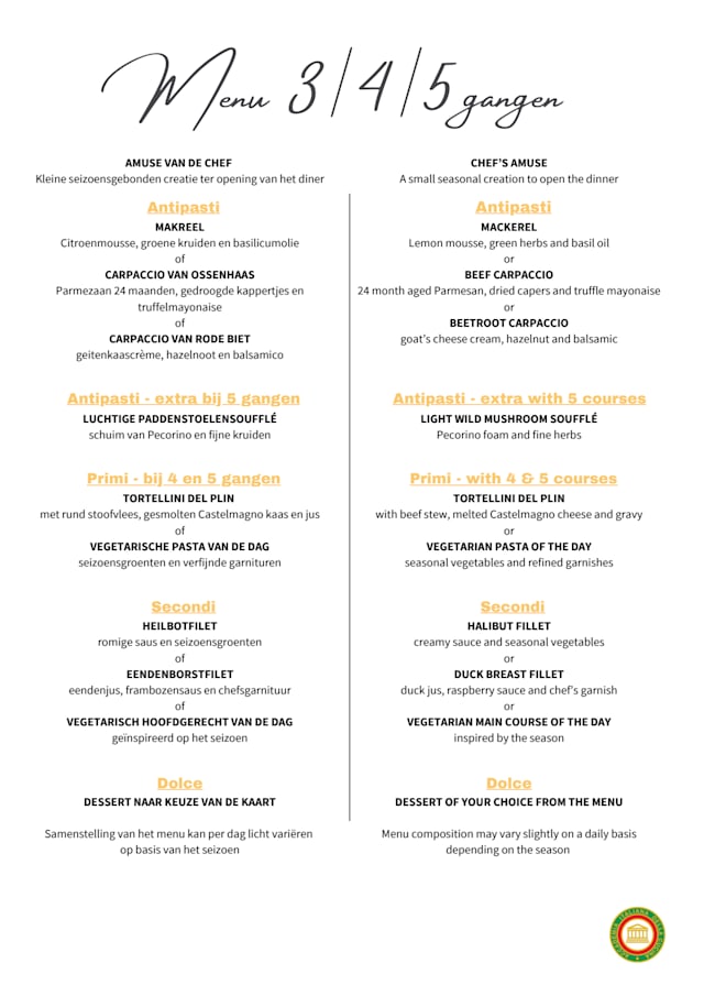 8.5/10Last Saturday, before heading to a concert, my friends and I had dinner at La Passione in The Hague. Upon arrival we were greeted with a warm welcome. The restaurant isn’t large, but the intimate, cozy atmosphere and beautiful decor made it feel right. What really stood out is that they don't offer your average Italian menu, which was a pleasant surprise. I had the parsnip soufflé, which had a lovely texture and was well-prepared. However I felt the parsnip flavor was somewhat lost due to the overpowering presence of Parmesan cheese, which dominated the dish. I would have liked a bit more balance so the parsnip could shine. I had the marinated beef cheeks as main served with a parsnip purée draped over the top. The beef was tender and flavourful, and the parsnip purée added a nice smoothness without overwhelming the dish. It was an enjoyable evening. Good food, cozy atmosphere and good service. It’s worth noting that the prices are on the higher side. I recommend this restaurant.