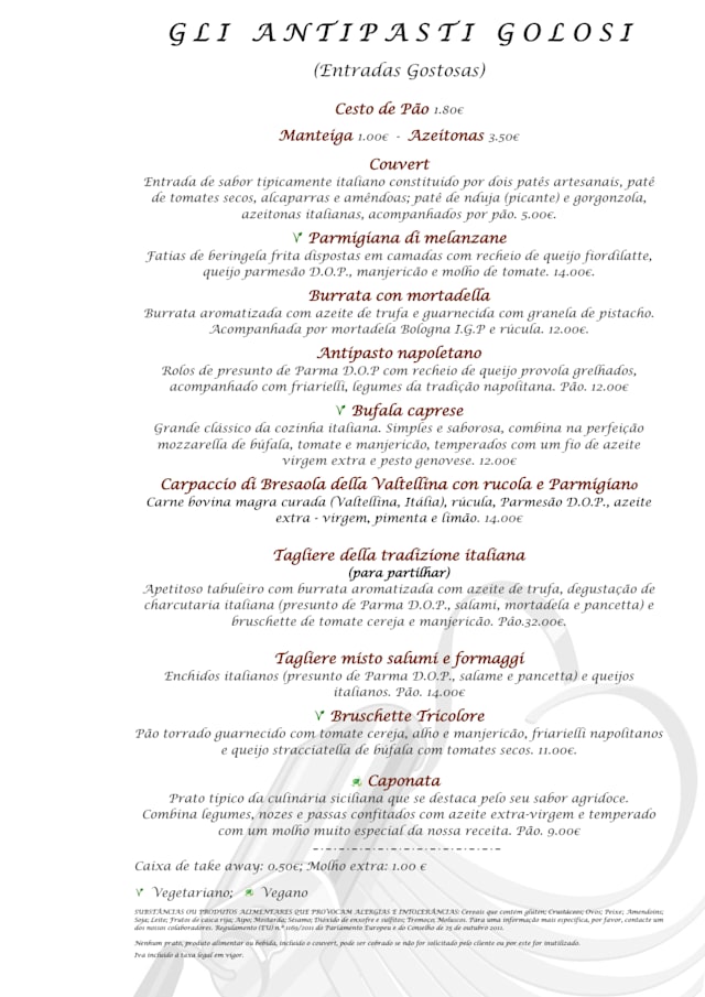 10/10This authentic Italian restaurant was just a short walk from our hotel. What impressed me the most is that they make their pasta fresh daily and their sauces are very nice. Not too heavy and not too light. Just right to compliment the pasta which was also cooked perfectly al dente for us. We had a lovely evening. The portions were just right to fill us up for another day of sight seeing in Lisbon.