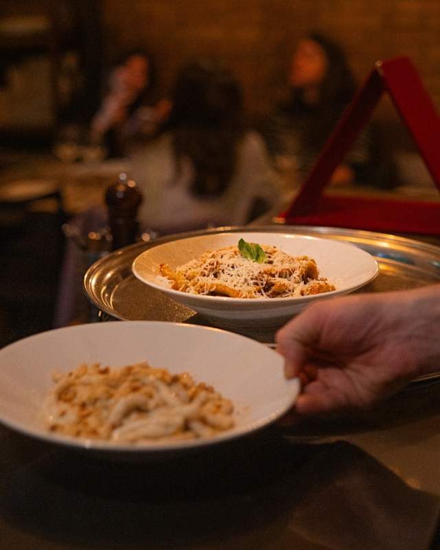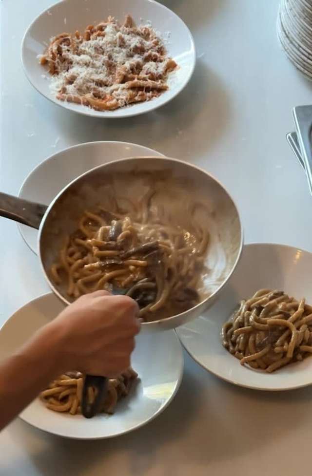 - Tagliatelle con salsa di parmigiano tartufato e nocciole tostate