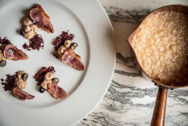 - Risotto champagne, pistilli di zafferano e spuma di parmigiano