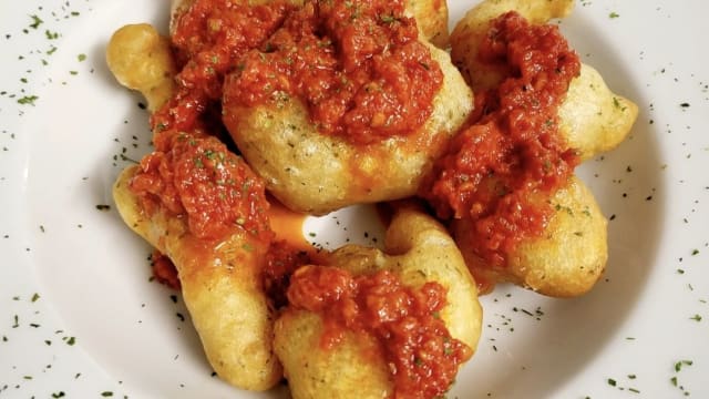 Lunette di pasta lievitata ripiene di mozzarella e pomodoro fritti.
