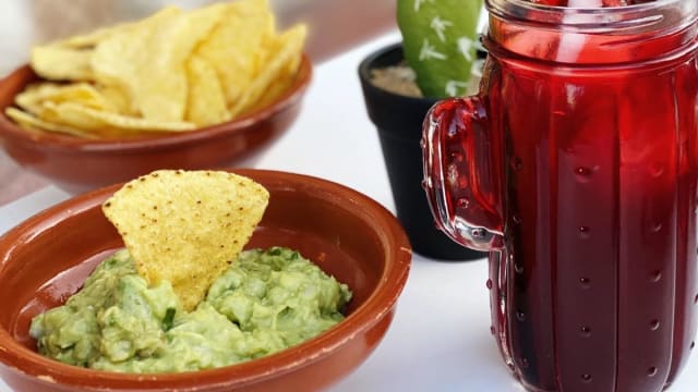 Mezcla de aguacates con cebolla, cilantro y limón acompañados de totopos