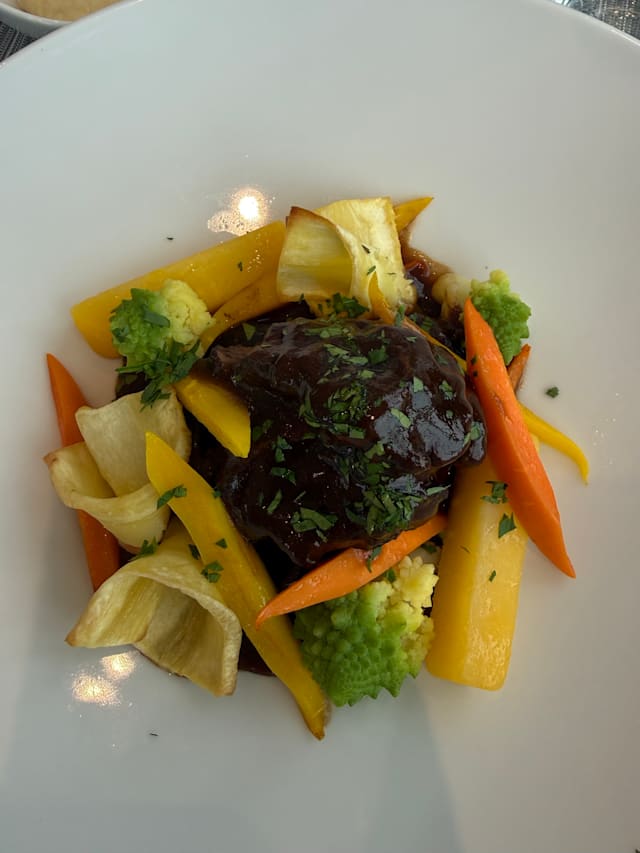 9/10A very pleasant terrace with views on the lake and mountains. The food was fresh and the service was good.