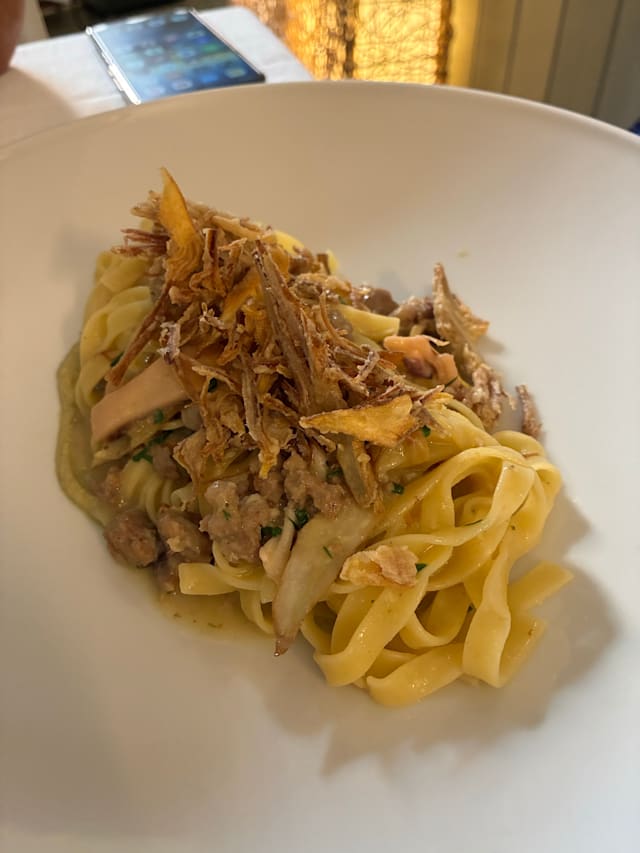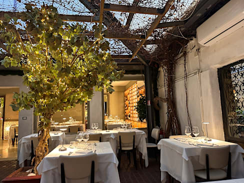 9/10Extremely beautiful restaurant, very sad that it was it was empty because the food was very good. The wine was very good and very cheap.