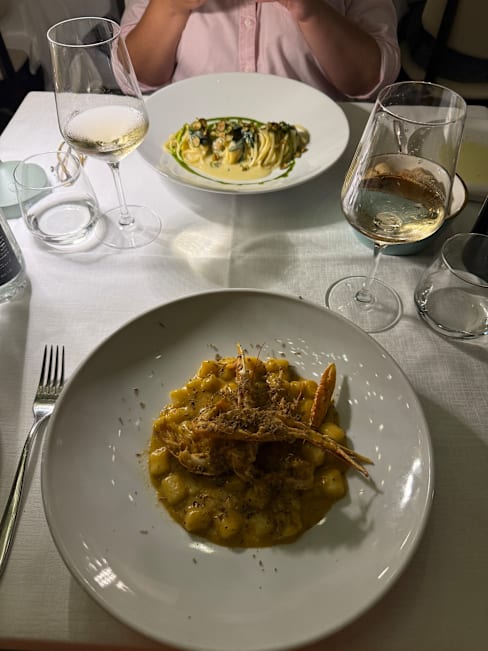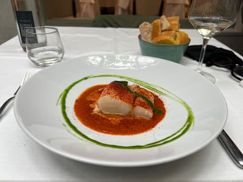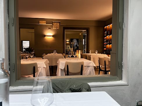 8/10Beautiful restaurant. lovely wine. we did not have enough time to enjoy it as we had Opera tickets. I wish they had recommended one course only. I ordered fish soup and got an enormous And more expensive seafood platter I could hardly touch. no time to quibble bill. one toilet unisex only. but the starter of prawns was great.