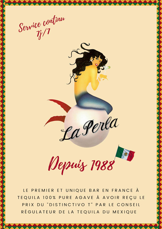 DEPUIS 1988 - La Perla Bar se situe dans le Marais entre Hôtel de Ville et Saint-Paul. Cette adresse est reconnue comme étant le meilleur bar à Tequila d'Europe. Elle offre un regard unique sur le Mexique tout en servant une vaste sélection de fines et rares tequilas. La musique latino-américaine et...