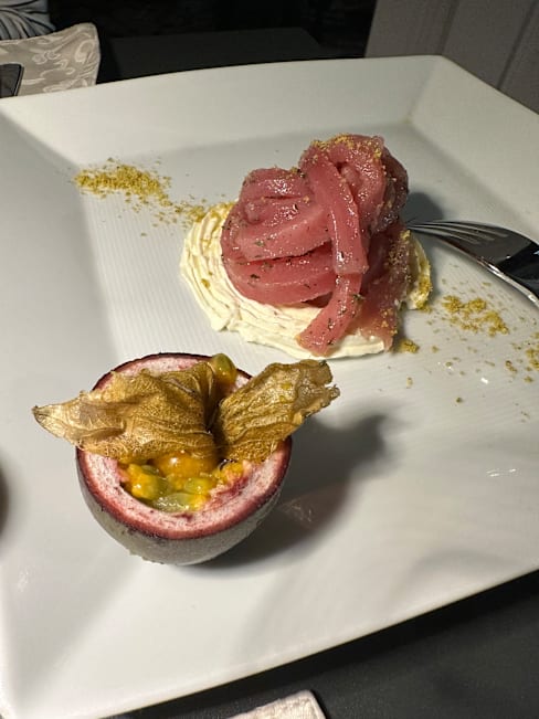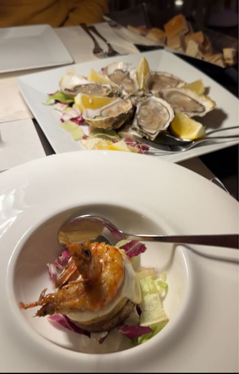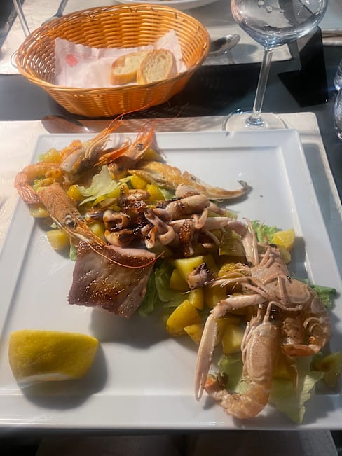 7.5/10Very nice seafood and local wine in a side street experience (i.e. no view and lots of street and outside noise). We chose to eat outside so no complaints but something to keep in mind. There is a large inside dining area but the outside tables and chairs seemed nicer. We had tuna (raw and seared) and salmon and each had great flavor and good portions. We dined on a Wednesday night and there was one waiter for the restaurant-he did a nice job but as the restaurant filled up he was stretched between inside and outside. I did not pay attention when booking as we were near the City Center so it was a bit of a walk as the location is past the cruise terminal just off the sea. Enjoyed our meal but also felt we could have had an equal experience closer to our apartment.