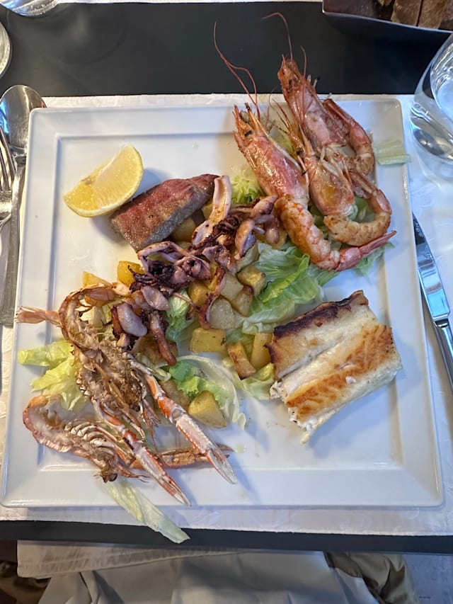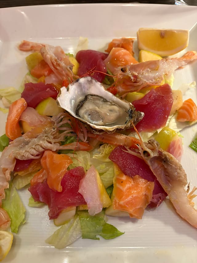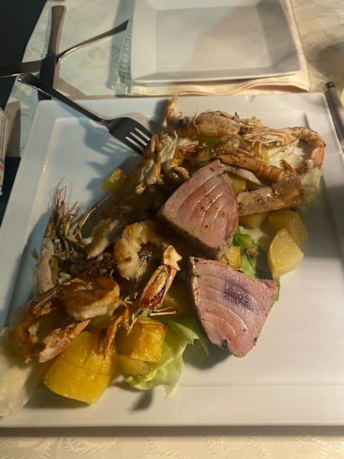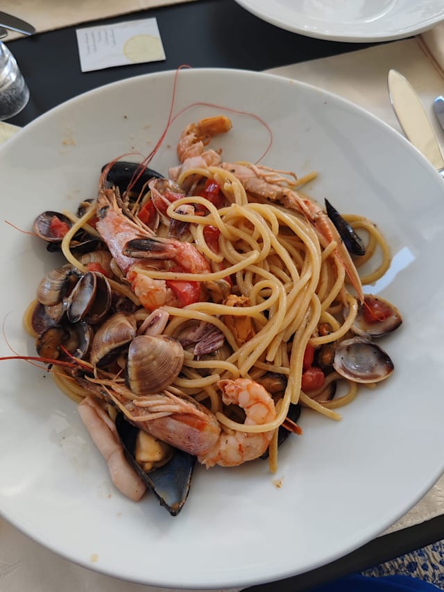 10/10Best food we have had in Italy so far. The salmon on grilled veggies was delightful, Fruita de Mare pasta was great. Desserts were amazing. Go there!