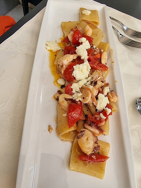 10/10Best food we have had in Italy so far. The salmon on grilled veggies was delightful, Fruita de Mare pasta was great. Desserts were amazing. Go there!