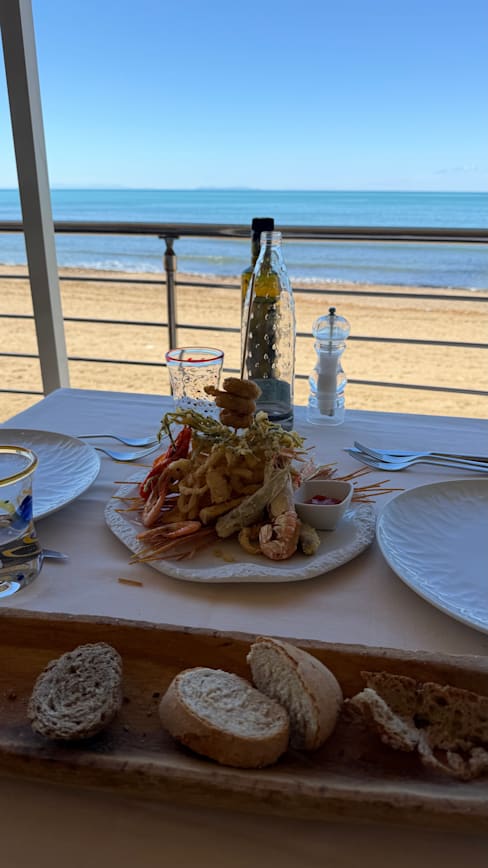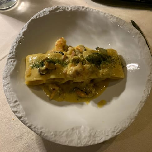 9.5/10+2An amazing location for a romantic dinner! Regardless of the weather, the sun within the restaurant and its relaxing atmosphere it’s always shining. The staff has everything under control. We felt so looked after and treated so well. The plates and the food within are presented to the customer with such elegance and sophistication that you can’t help yourself to frame each dish you order. The perfect combination of sweet and sour and the delicious taste of the food has made us fall in love with the amazing work behind it. The Paccheri alla Carbonare di Mare I believe they were a bit too salty, but still very delicious. In conclusion, I highly recommend La Perla del Mare!