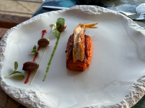 9.5/10What a view! We got there to watch the sun set and have some great food and what an experience. The food was amazing, very delicate seafood. We had a great romantic dinner.