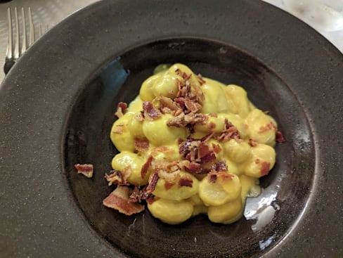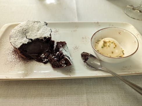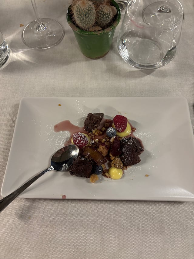 9/10The ambience of the restaurant is lovely - tasteful and refined. The service was good, but just very confused. We got the second dish with the starter, which was quickly taken away. We then got the second dish, and then the secondi but for some reason they thought we ordered two dishes and not one to share. Besides the order confusion, the food was very good as was the wine the head waiter recommended. I’d still recommend you go if you’re in or near Radda.