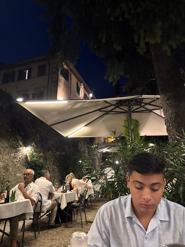 10/10My wife and I had a delightful lunch at La Perla del Palazzo in Radda in Chianti and thoroughly enjoyed every aspect of the experience. The setting is simply charming—a lovely garden surrounded by lush greenery, enhanced by elegant sun shade umbrellas that create a serene and stylish atmosphere. Service was quick and efficient, which made the experience all the more relaxing. The staff were courteous, attentive, and helpful, striking just the right balance of professionalism and warmth. We opted for a light lunch, starting with a mixed salad that was incredibly refreshing, followed by filet with baked potatoes—both tasty and perfectly cooked. A wonderful spot for a peaceful and satisfying meal in the heart of Chianti.