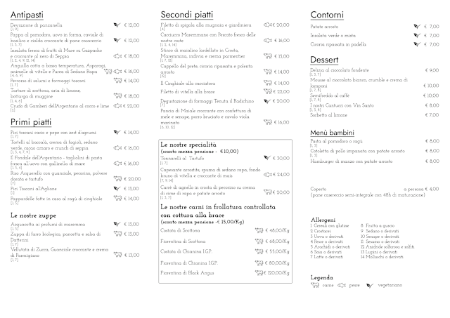 INSIDERMeat CuisineSeafoodToscanoContemporary cuisineCreativeGluten freeOrganic foodVegetarian dishes