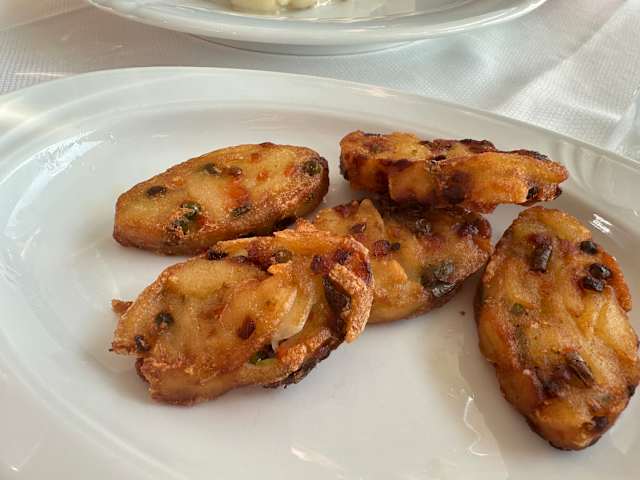 Pomodoro, mozzarella, zucchine fritte, gamberetti