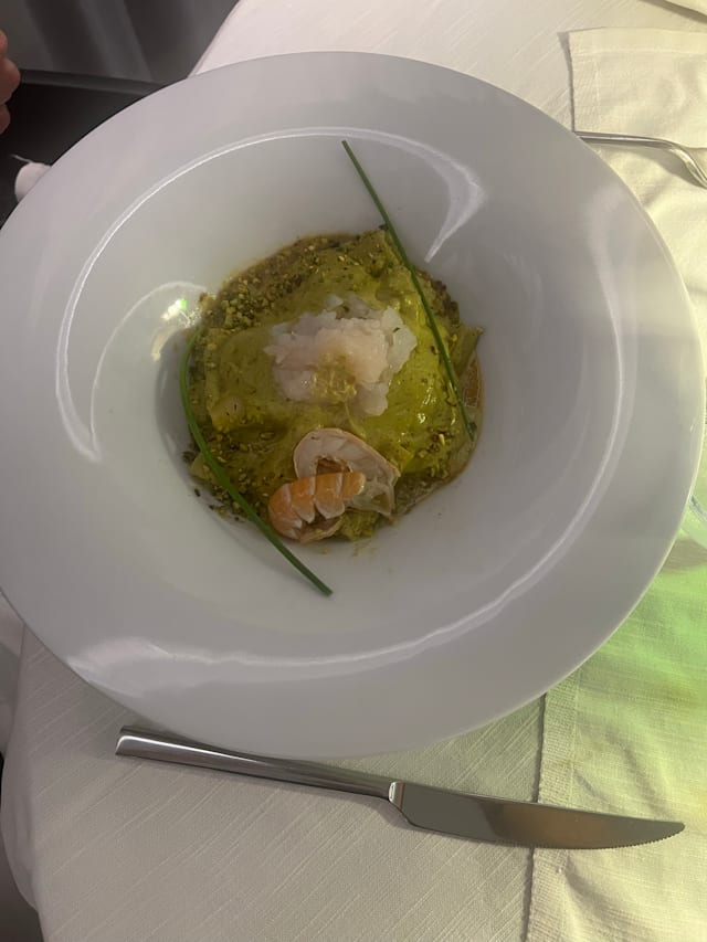 Tortello ripieno capesante e gamberi al sugo di crostaceo