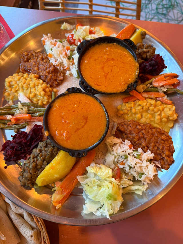 - Riche assortiment de plats de brunch éthiopien, avec une boisson chaude incluse