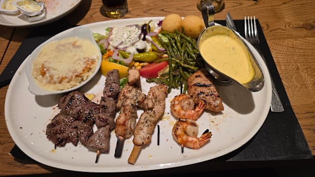 10/10Nice and friendly restaurant. We went with family and every body found his choice in the menu. We can enjoy a mezze, or a greek plate, or asian food. Very nice to please every body.
