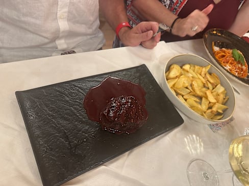 5.5/10My sword fish (Pesce spada con salsa agli agrumi) was ok, although noting special, but my husband's mix of shrimps, prawns and sepia (Gran frittura Ducale), according to him, was terrible, probably the worst he ever had. The waiters were efficient, but no professional curtesy or smile, whatsoever. The atmosphere in the restaurant was not at all like the pictures on the internet. Besides, we ordered a simple focaccia at the beginning, but it was charged as a pizza marguerita. So, no, in our opinion, it is not worth the money or the time.