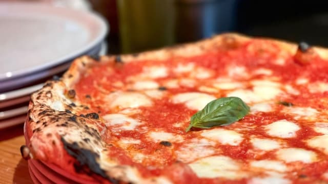 Salsa di pomodoro gialli, mozzarella, salame napoletano, cipolla di figueres e pecorino