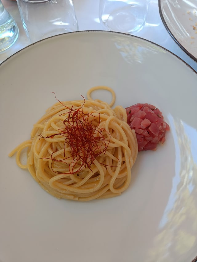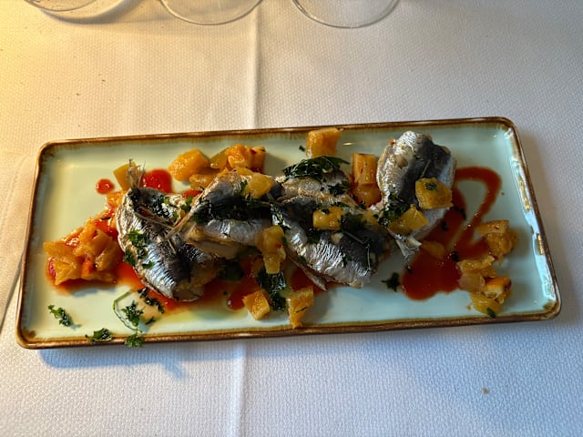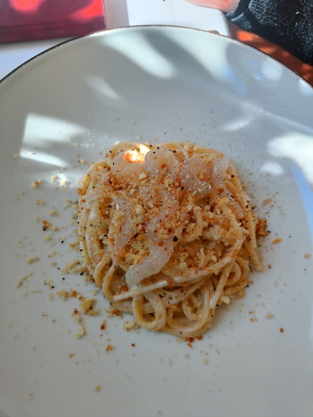 9.5/10the restaurant was out of the tourist area, down an interesting street with modern murals. we ate grilled mackerel on top of bits of cheese and pickled pears, pasta with clams and bottarga, grilled sea bass on top of dollops of burrata and dried tomatoes. everything was delicious! the proprietor/waiter was gracious and kind. highly recommended, especially if you want to get away from the tourist traps.