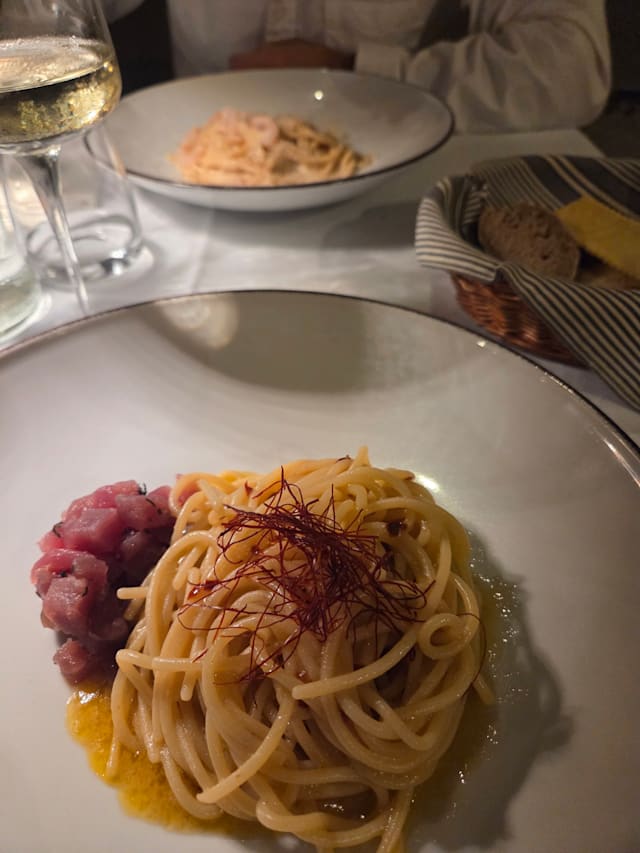 10/10We’ve been meaning to go to this restaurant for awhile & so glad we finally had dinner here. A delicious meal with seafood choices-one of the best meals we’ve had in Bologna. Flan and pasta with raw tuna were our starters, and grilled sea bream for secondi (really good!), followed by a cake with brandy sauce. I highly recommend a dinner here.