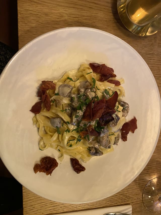 8/10I had the mushroom and truffle ravioli with Parmesan... it was delicious! The portion size was generous, and the setting is lovely. The staff is very helpful and attentive. Make sure to book a reservation before you go!