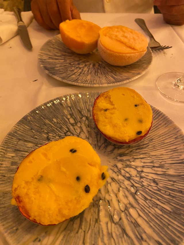 Fines tranches de saint-jacques délicatement assaisonnées, relevées par la fraîcheur croquante du radis red meat et la douceur acidulée de la grenade.