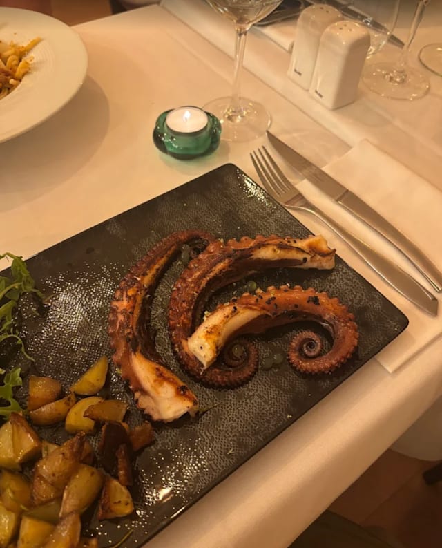Tendres morceaux de poulpe marinés, associés à des légumes croquants et des herbes fraîches, relevés d’un filet d’huile d’olive extra vierge et d’une pointe de citron.